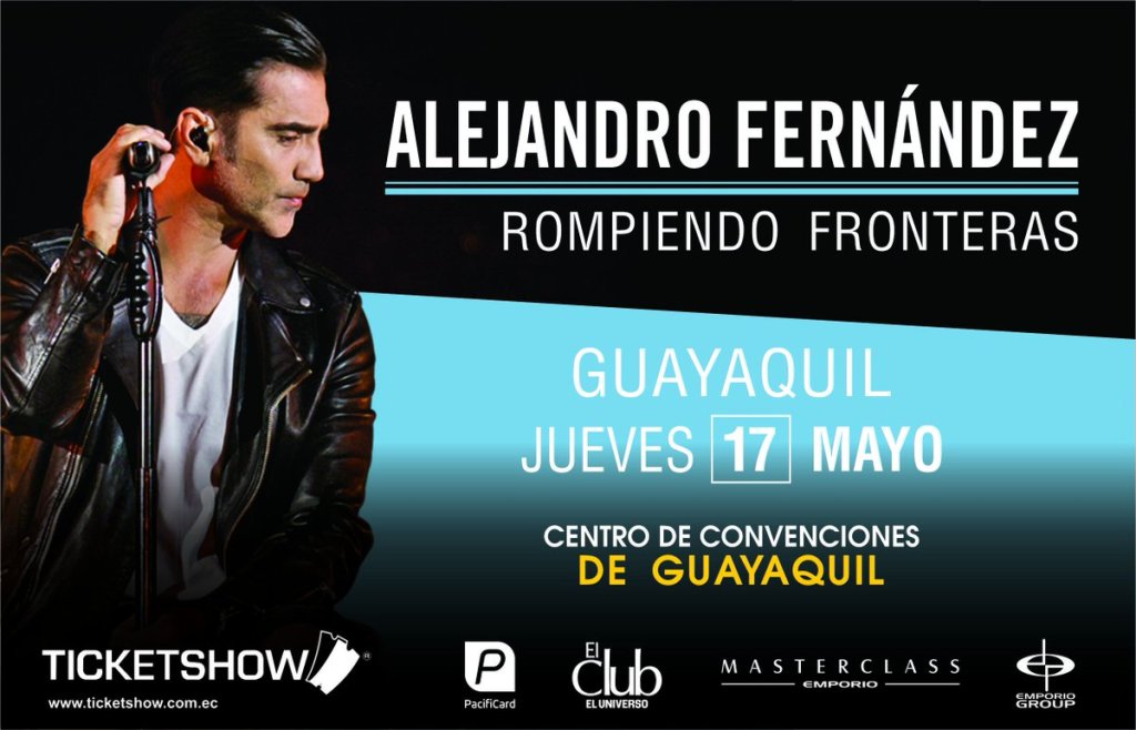 Guayaquil es el escenario en Ecuador, en donde el cantante mexicano Alejandro Fernández, celebrará los 25 años de trayectoria musical. El ganador de un Grammy y dos premios Billboard, se presentará en el Centro de Convenciones Simón Bolívar, como parte de su gira Rompiendo Fronteras.