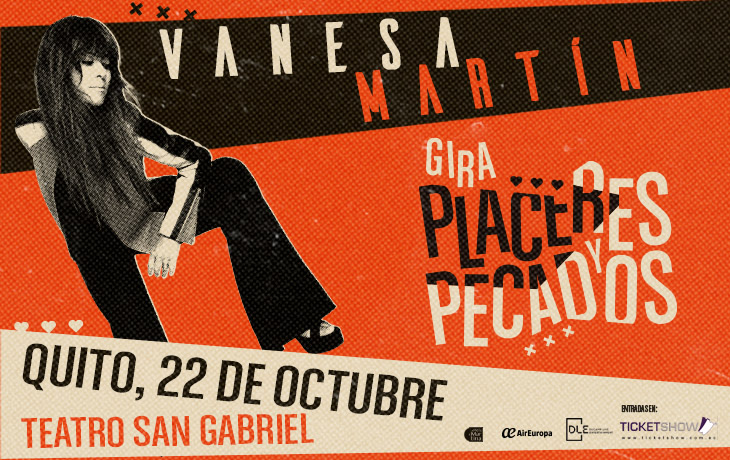 VANESA MARTÍN PRESENTA SU “GIRA PLACERES Y PECADOS” EN QUITO !!! La artista española regresara a Ecuador y actuará el próximo domingo 22 de Octubre a las 07;00 p.m. en el Teatro San Gabriel de la ciudad de Quito. La gira ´Placeres y pecados’ se encuentra enmarcada en el octavo disco de Vanesa Martín en su carrera, que inicia este mes de Mayo en España y que recorrerá latinoamerica y Estados Unidos durante el ultimo trimestre de este año, pasando por países como Argentina, Colombia, Perú, Panamá y Ecuador entre otros. En esta gira Vanesa interpretará parte del repertorio de su nuevo álbum con temas como ´Si Pudiera´, ´Quien lo diría´ o ´Marzo´ , que son solo parte de este nuevo espectáculo enmarcado en una atmósfera que combina la poesía en sus letras con su energía en el escenario y donde no faltarán los éxitos de su carrera para el deleite de su público.